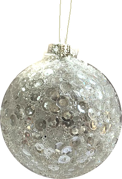 Εντυπωσιακό χριστουγεννιάτικο στολίδι. Γυάλινη μπάλα καλυμμένη με ασημένιες παγέτες. Ιδανική για διακόσμιση χριστουγεννιάτικου δέντρου ή για να προσθέσετε μια ξεχωριστή πινελιά σε οποιοδήποτε χώρο.