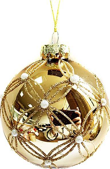 Γυάλινη μπάλα - χρυσή με πέρλες 8εκ.  ΚΩΔ. 0076