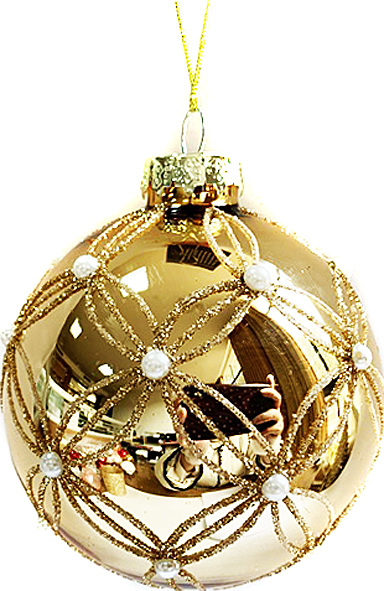 Γυάλινη μπάλα - χρυσή με πέρλες 6εκ.  ΚΩΔ. 0075