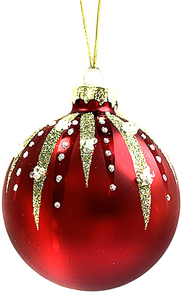 Γυάλινη μπάλα - κόκκινη ματ με χρυσό σχέδιο 6εκ.  ΚΩΔ. 0091