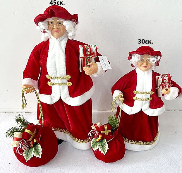 Χριστουγεννιάτικο διακοσμητικό, Γυναίκα του Άγιου Βασίλη με δώρα. Προσθέστε μαγεία στη χριστουγεννιάτικη διακόσμηση σας. Η φιγούρα αυτή αποπνέει γιορτινή ατμόσφαιρα, ιδανική να γεμίσει οποιαδήποτε γωνιά του σπιτιού σας και να φέρει χαρά στους καλεσμένους σας.