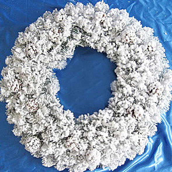 Χριστουγεννιάτικο στεφάνι με έντονη χιονισμένη εμφάνιση, που δημιουργεί την αίσθηση φρεσκοπεσμένου χιονιού. Το στεφάνι διαθέτει πλούσια πράσινα κλαδιά και κουκουνάρια καλυμμένα με λευκή χιονισμένη υφή, προσφέροντας μια φυσική και χειμωνιάτικη αίσθηση. Είναι ιδανικό για την είσοδο ή για το εσωτερικό του σπιτιού, προσθέτοντας μια αίσθηση καθαρότητας και χειμωνιάτικης μαγείας στη χριστουγεννιάτικη διακόσμηση.