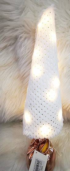 Μοντέρνο και κομψό χριστουγεννιάτικο διακοσμητικό δέντρο σε λευκή απόχρωση με διακριτό διάτρητο σχέδιο που επιτρέπει στο φως να διαχέεται με ζεστό και απαλό τρόπο. Το ύψος του στα 48εκ. το καθιστά ιδανικό για να διακοσμήσει το τραπέζι ή την κονσόλα σας, προσφέροντας μια φωτεινή και γιορτινή αίσθηση στον χώρο σας. Μια καλαίσθητη επιλογή για minimal χριστουγεννιάτικη διακόσμηση.
