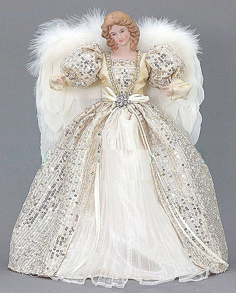Ένα εντυπωσιακό χριστουγεννιάτικο διακοσμητικό αγγέλου που προσδίδει πολυτέλεια και λάμψη στη διακόσμησή σας. Ο άγγελος φοράει ένα πλούσιο φόρεμα σε χρυσούς τόνους, διακοσμημένο με λαμπερές παγιέτες και κομψές λεπτομέρειες, που προσδίδουν μια αίσθηση βασιλικής μεγαλοπρέπειας. Τα μακριά, λευκά φτερά του ενισχύουν τη θεϊκή του παρουσία και προσθέτουν ένα στοιχείο μαγείας στον χώρο σας. Ιδανικό για χριστουγεννιάτικη διακόσμηση σε τραπέζι ή για το στολισμό του δέντρου.