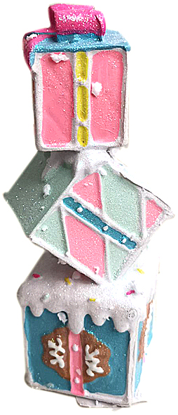 Αυτός ο παιχνιδιάρικος διακοσμητικός πύργος δώρων, φέρνει μια γλυκιά και χρωματιστή πινελιά στη χριστουγεννιάτικη διακόσμηση. Με σχέδια που θυμίζουν ζαχαρωτά, καραμέλες και παστέλ αποχρώσεις, κάθε "δώρο" είναι στολισμένο με λευκές "ζαχαρένιες" λεπτομέρειες που προσδίδουν αίσθηση χειμωνιάτικης μαγείας. Είναι ιδανικό για τοποθέτηση σε τραπέζια, ράφια ή κοντά στο χριστουγεννιάτικο δέντρο, προσθέτοντας μια παραμυθένια και εορταστική διάθεση.