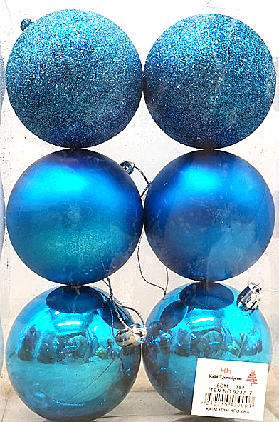 Ανανεώστε τον χριστουγεννιάτικο στολισμό σας με αυτό το σετ από 6 μπλε μπάλες. Το σετ περιλαμβάνει μπάλες σε διαφορετικές υφές: ματ, γυαλιστερές και γκλίτερ, που προσθέτουν λάμψη και κομψότητα. Ιδανικές για να δώσουν έναν δροσερό, χειμωνιάτικο τόνο στο δέντρο ή τη διακόσμησή σας.
