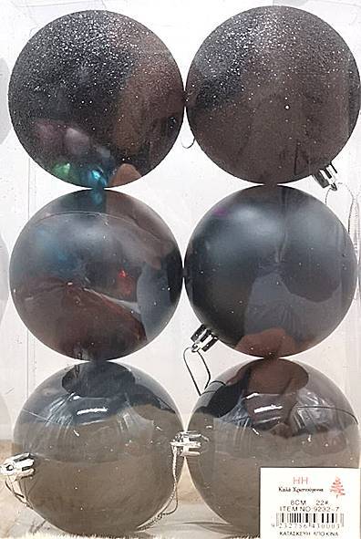 Πρωτότυπο και κομψό σετ χριστουγεννιάτικων μπαλών σε σκούρο μαύρο χρώμα, ιδανικό για μοντέρνες διακοσμήσεις δέντρων. Το σετ περιλαμβάνει 6 μπάλες με διάφορες υφές: ματ, γυαλιστερές και γκλίτερ, προσθέτοντας μία μοναδική αισθητική στο χώρο σας και μια διακριτική λάμψη.