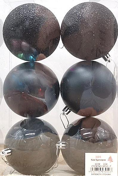 Δώστε στο χριστουγεννιάτικο δέντρο σας μια μοντέρνα και μυστηριώδη αίσθηση με αυτό το σετ μαύρων μπαλών. Το σετ περιλαμβάνει 6 μπάλες σε διαφορετικές υφές: ματ, γυαλιστερές και με γκλίτερ, προσθέτοντας λάμψη και στυλ στη γιορτινή σας διακόσμηση. Ιδανική επιλογή για όσους επιθυμούν μια ιδιαίτερη και κομψή διακόσμηση.