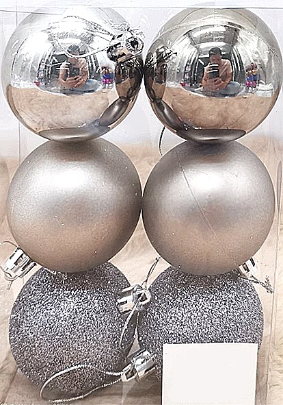 Προσθέστε λάμψη και κομψότητα στη χριστουγεννιάτικη διακόσμηση με αυτές τις σκούρες ασημί μπάλες. Το σετ περιλαμβάνει 6 μπάλες σε γυαλιστερό, ματ και glitter φινίρισμα, που δημιουργούν ένα εντυπωσιακό παιχνίδι φωτός και υφής, ιδανικό για κάθε στυλ χριστουγεννιάτικης διακόσμησης.