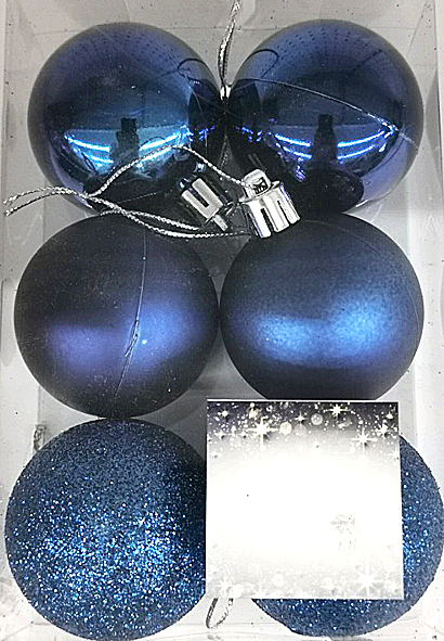 Διακοσμήστε το χριστουγεννιάτικο δέντρο σας με αυτές τις κομψές σκούρες μπλε μπάλες, που θα προσθέσουν βάθος και φινέτσα στη χριστουγεννιάτικη ατμόσφαιρα. Το σετ περιλαμβάνει μπάλες σε τρεις ιδιαίτερες υφές: γυαλιστερές για λαμπερή αντανάκλαση, ματ για έναν μοντέρνο τόνο και γκλίτερ για μοναδική λάμψη. Αυτές οι μπάλες είναι ιδανικές για να δημιουργήσετε έναν διακριτικό αλλά εντυπωσιακό στολισμό που ταιριάζει τόσο σε κλασική όσο και σε μοντέρνα διακόσμηση.