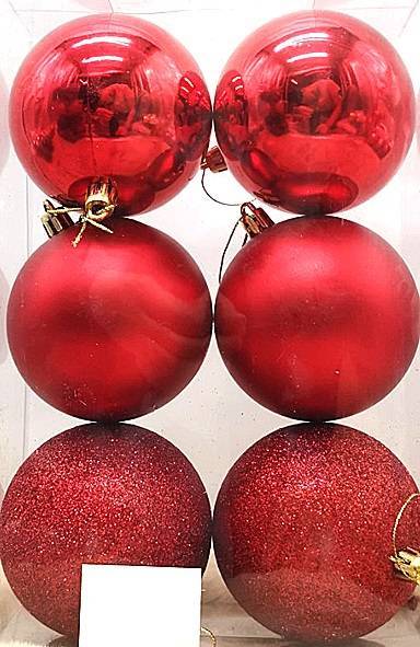 Προσθέστε ζεστασιά και ένταση στη χριστουγεννιάτικη διακόσμησή σας με αυτές τις κομψές μπάλες σε βαθύ κόκκινο χρώμα. Το σετ περιλαμβάνει έξι μπάλες με τρεις μοναδικές υφές - γυαλιστερές για λάμψη, ματ για ένα κομψό αποτέλεσμα και γκλίτερ για έξτρα φωτεινότητα. Συνδυάστε αυτές τις μπάλες στο δέντρο σας ή σε άλλες συνθέσεις για ένα εντυπωσιακό, εορταστικό αποτέλεσμα.